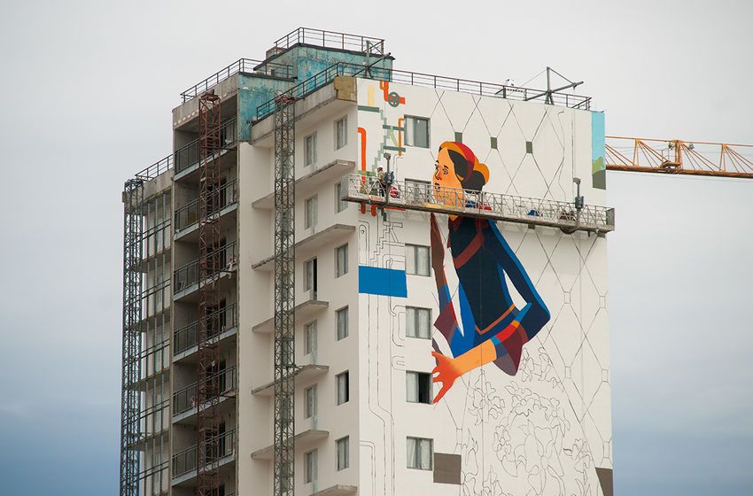 Это уже третий художественный проект в ЖК «Граффити». До этого известные российские граффитчики Akue, Adno, Petro и Slak «забомбили» шесть корпусов комплекса, один из них, высотой 510 метров, тогда побил рекорд по размерам среди всех настенных росписей в России.