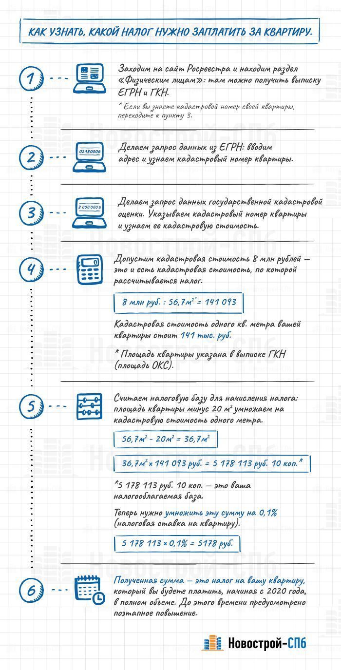Если недвижимость находится в Санкт-Петербурге или Ленинградской области, то рассчитать налог самостоятельно можно по формуле, имеющейся в Налоговом Кодексе РФ (в п. 8 ст. 408):
