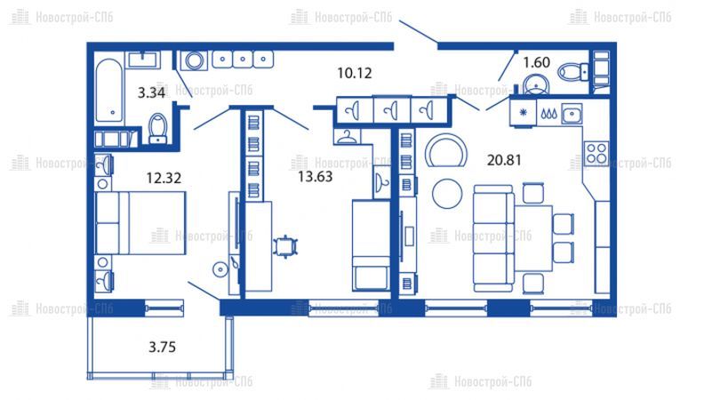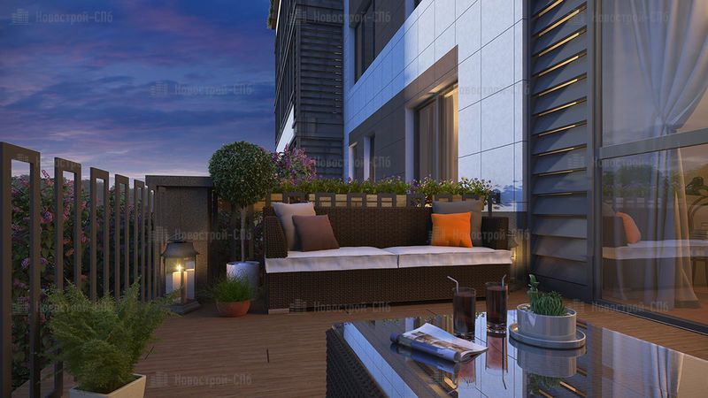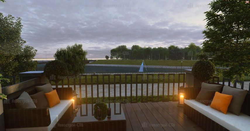 Разместить его можно как в одной из комнат, так и на просторной 10-метровой лоджии, которая напоминает крытую террасу. Благодаря панорамному остеклению и местоположению дома открывается живописный вид на Финский залив.