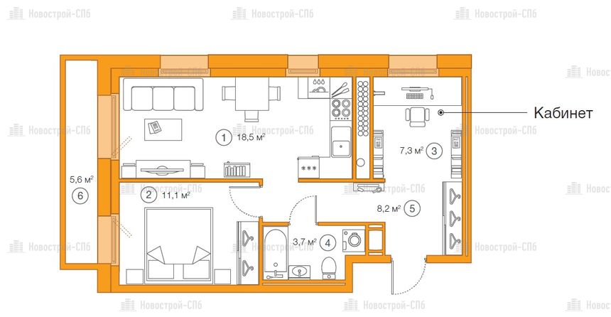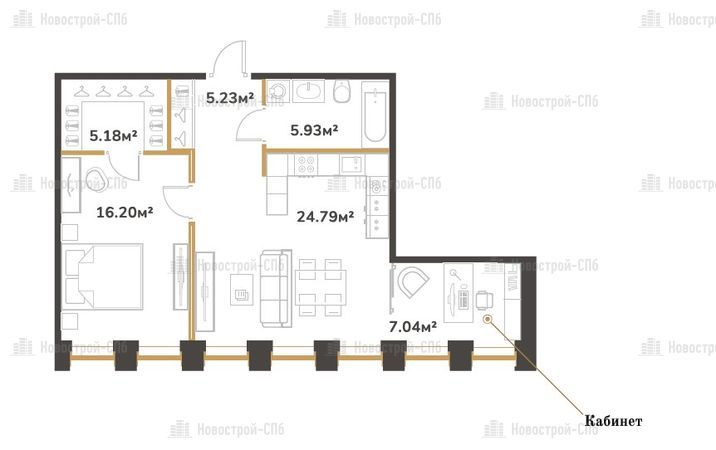 В ЖК Golden City, который возводится на намывных территориях Васильевского острова, и ЖК Ligovsky City сейчас в наличии очень много разных планировок. В том числе с кабинетами или комнатами, в которых есть ниша, где можно организовать рабочую зону.