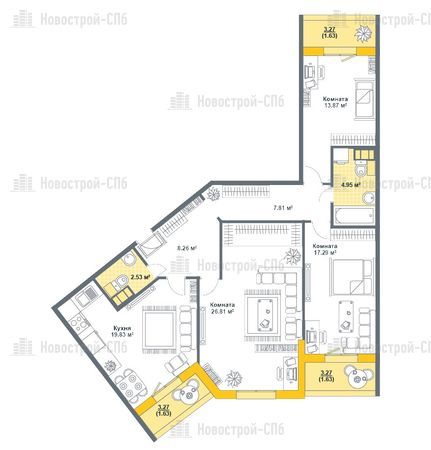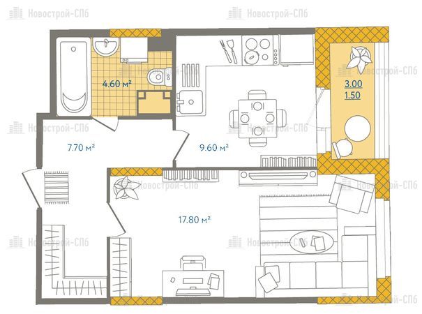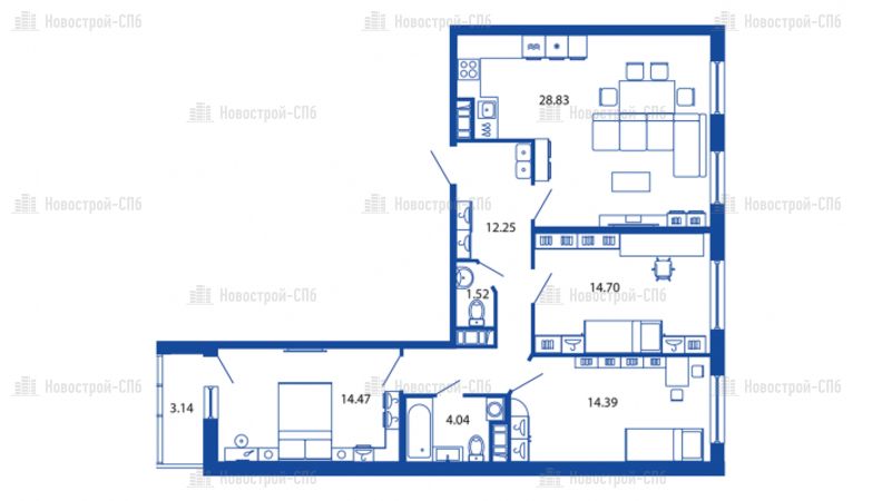 Квартирография кварталов «Светлый мир» от Seven Suns Development тоже представлена функциональными планировками евроформата (и не только). В четырехкомнатной квартире евроформата в ЖК «Светлый мир «Тихая гавань» даже при наличии большой семьи будет несложно обустроить рабочее место.