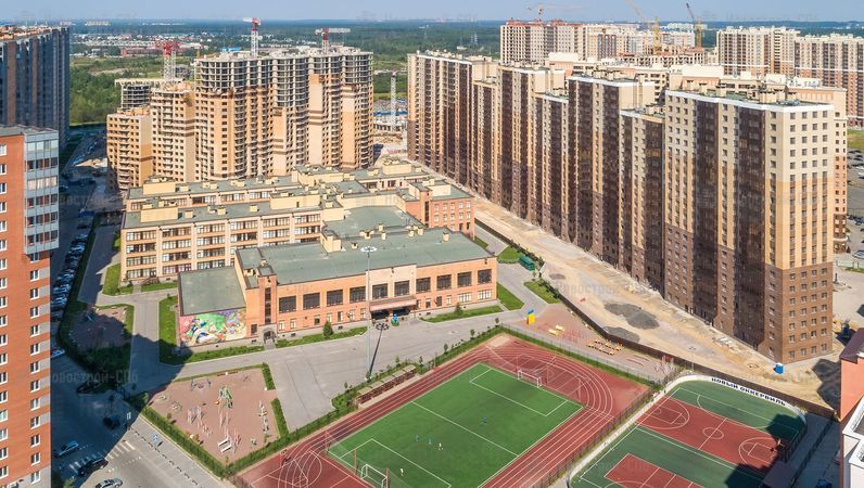 Параллельно создаются объекты социальной инфраструктуры. В составе комплекса уже открыт детский сад и готовится ко вводу в эксплуатацию здание школы. Всего будет построено две школы и шесть детских садов, объединенных пешеходным Бульваром Белых ночей.