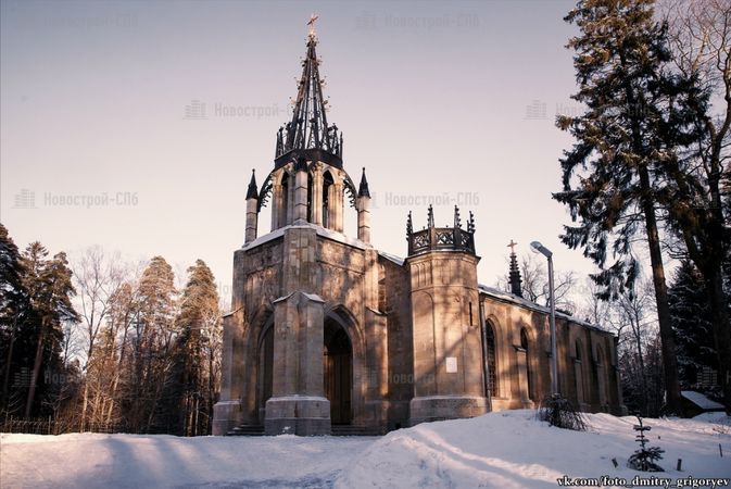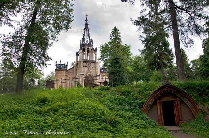 Интересна история появления церкви апостолов Петра и Павла. В 1830 году Варвара Петровна осталась вдовой во второй раз: ее муж Адольф Полье трагически погиб. Графиня решила увековечить его память – в парке соорудили слеп в готическом стиле. Вскоре Шувалова добилась разрешения для строительства рядом с ним православной церкви – при условии, что усыпальница католика будет находиться за оградой храма. Ходят слухи, что рядом со склепом расположен вход в подземный тоннель, который пересекает весь парк.