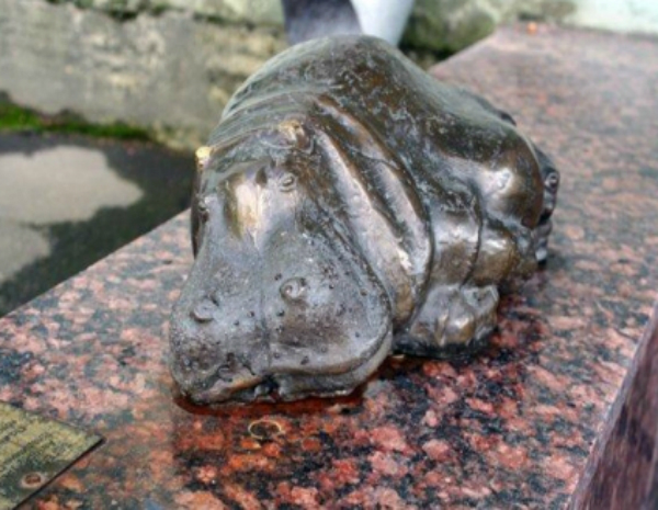 Еще один памятник животному в Петербурге появился в 2005 году во дворе Филологического факультета Санкт-Петербургского Университета. Это бронзовая фигурка лежащего на гранитном постаменте бегемота по имени Тоня.