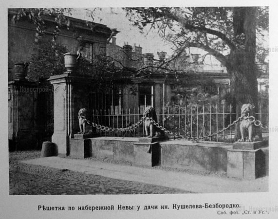 В первой половине XIX века построенный на месте старого дома особняк канцлера Базбородко перешел графу Кушелеву-Безбородко. Тогда усадьба стала известна как лечебный курорт (дача): еще при Петре I здесь обнаружили источники минеральных вод.