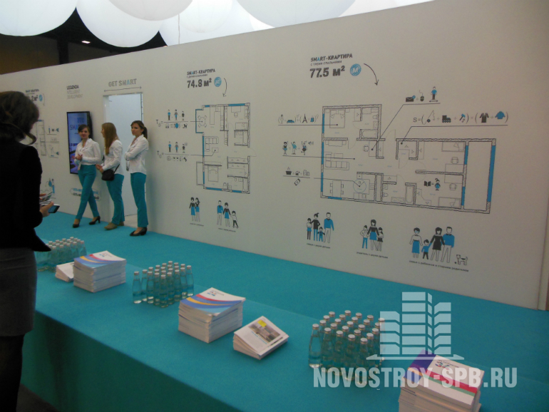 Немало оживляла обстановку выставки романтическая пара аниматоров, рекламирующая жилой комплекс «Я-романтик», который строит на намывных территориях Васильевского острова компания Seven Suns. Свой стенд застройщик превратил в кинотеатр, где всем желающим демонстрировали рекламные ролики. Этот комплекс больше года назад проверялся тайным покупателем: на тот момент предлагалась только платная бронь квартир, продажи не вели в связи с отсутствием разрешения на строительство и неясной перспективой подключения коммуникаций на этой территории. Менеджер по продажам рассказала мне, что все проблемы остались позади, застройщик получил разрешение на строительство в сентябре этого года и примерно месяц назад открыл продажи. Правда, срок окончания строительства перенесен с 1 квартала 2015 на 3 квартал 2016, а цены подросли. Год назад студию в ЖК «Я – романтик» можно было купить за 1,623 млн рублей, а однокомнатную квартиру за 2,203 млн рублей. Сейчас студия 23 кв.м обойдется в 1,890 млн рублей, а однокомнатная квартира 32 «квадрата» - в 2,690 млн рублей.