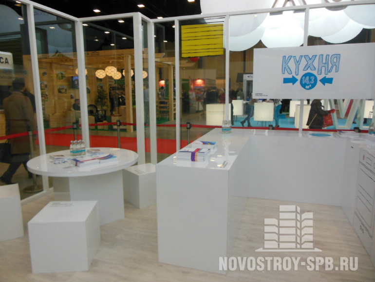 Стенд ЖК «Ванино» от эстонской компании «Тареал» привлекает внимание благодаря демонтрации технологии строительства и образцов отделочных материалов.