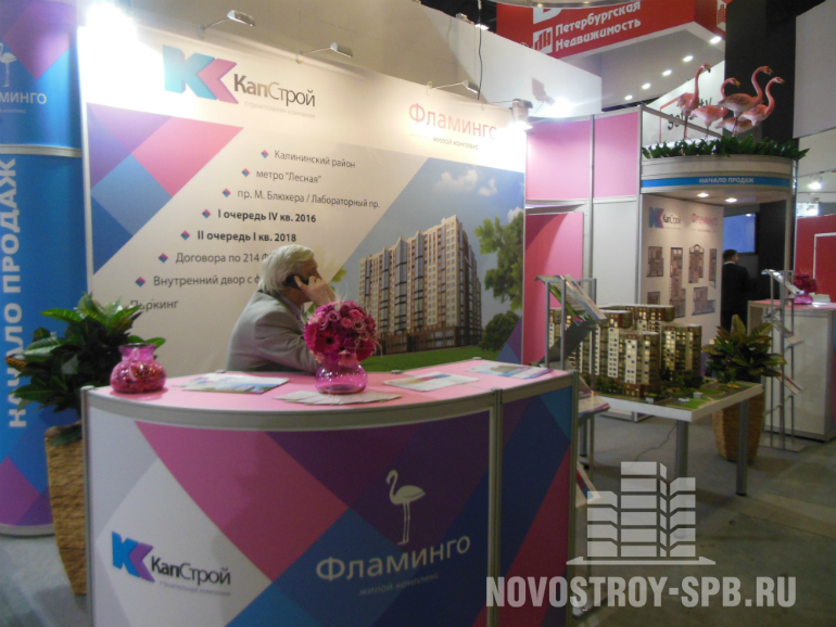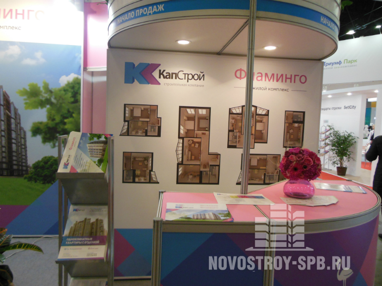 Остальные застройщики и брокеры пытались привлечь покупателей, в основном, при помощи оригинального оформления стендов. Мне очень понравился стиль стенда компании «Капстрой», строящей в Калининском районе ЖК «Фламинго».