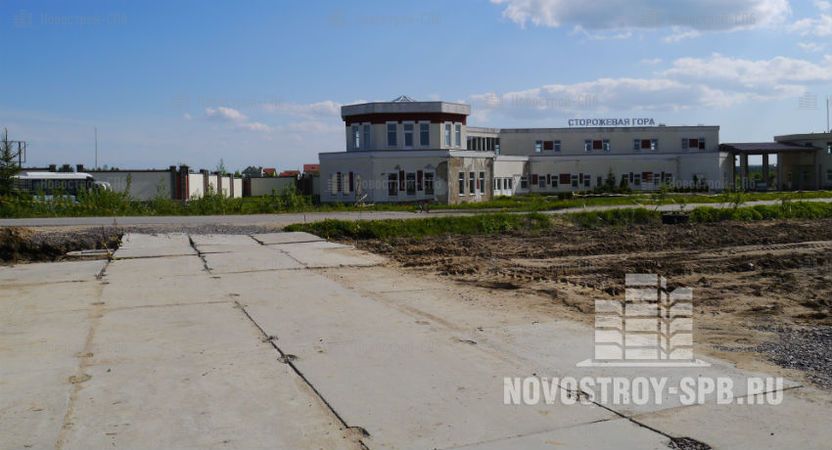 И вот, наконец, мы на месте. Прямо напротив стройки ЖК «Цветы» стоит какое-то полуразрушенное строение с надписью «Сторожевая башня». Впоследствии я узнала, что это здание - КПП недостроенного коттеджного поселка обанкротившейся компании Rodex Group.