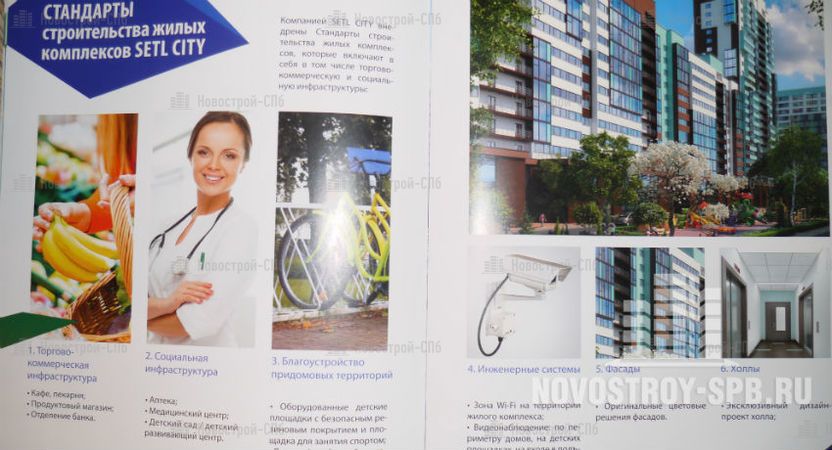 В квартирах также предусмотрен ряд опций, которые Setl City традиционно обеспечивает в своих домах: домофоны с возможностью подключения функции видео, механическая система очистки воды, система пожарной сигнализации с датчиками дыма в каждой квартире, стояки с шумоизоляцией, горизонтальная разводка отопления, радиаторы с терморегуляторами.