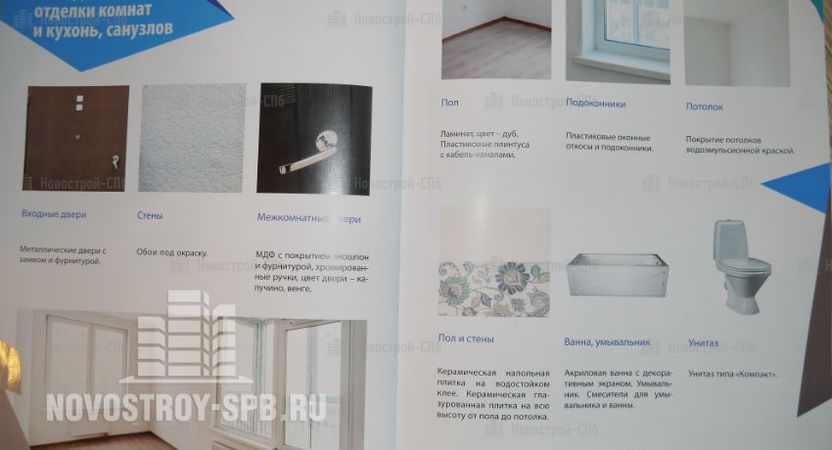 Технология строительства - кирпично-монолитная, внешние стены утеплят и оштукатурят, а затем покрасят в контрастные цвета, в стиле Setl City. Все квартиры сдаются с полной чистовой отделкой «под ключ» (стандарт застройщика №3), в который входят фактурные обои под покраску, ламинат, межкомнатные двери из экошпона (светлые или темные, глухие или с остеклением - на выбор), в санузлах керамическая плитка с декоративными вставками от Kerama Marazzi и акриловая ванна с декоративным экраном.