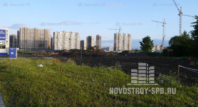 Кстати, до этой точки уже ходит гораздо больше транспорта, чем до пункта продаж на Парашютной улице - множество маршруток и автобусов от станций метро «Пионерская», «Старая деревня», «Комендантский проспект». В сухую погоду, наверное, вполне можно дойти до стройки и отсюда, по бездорожью, но, в любом случае, если решитесь прогуляться - надевайте обувь, которую не жалко испачкать.
