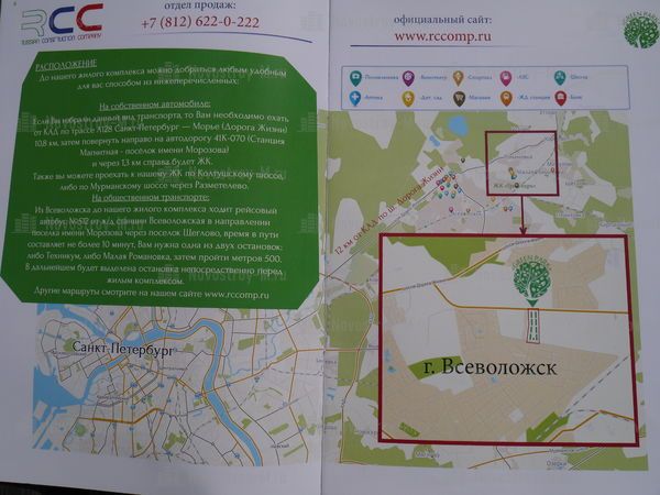 Расположение новостройки имеет свои плюсы и минусы. С одной стороны, достаточно близко - всего 11 километров от Ржевки, где проходит КАД и граница Санкт-Петербурга. Транспортное сообщение разнообразно: есть и железная дорога, и автобус №462, который с интервалом в полчаса следует до станции метро «Ладожская». С другой стороны, до ближайшей железнодорожной станции «Романовка» - 2 километра, а до остановки автобуса №462 полтора километра.