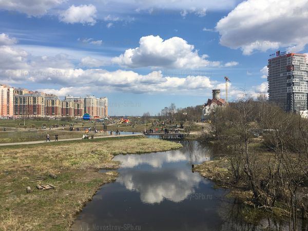 Кудрово – уютный, развивающийся район с хорошей экологической обстановкой (рядом нет и не было производственных объектов). Активно строятся и вводятся в эксплуатацию детские сады и школы, но одновременно с этим дома заселяются в основном семьями с детьми или потенциальными родителями – вполне возможна проблема с устройством в детский сад и школу. Тем более застройщик свои социальные объекты не запланировал.