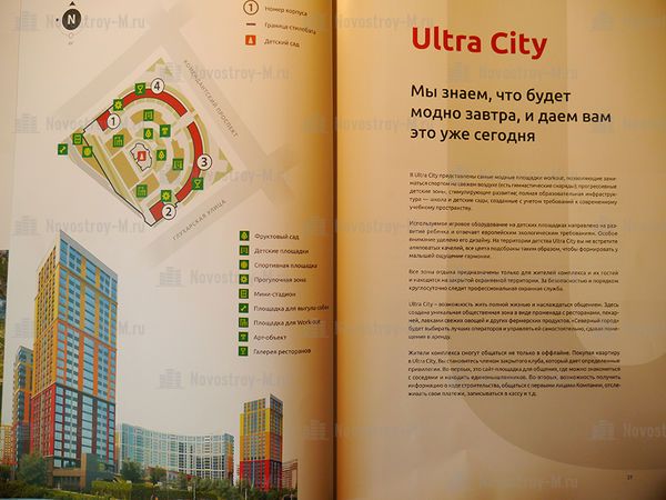 Рекламные материалы также очень качественные у обеих компаний. И все же, если отдавать предпочтение, то я бы выбрала ЖК Ultra City, поскольку в буклете более подробно освещаются все технические подробности строительства дома, уделено внимание видам из окон и прописаны прочие нюансы, в то время как в буклете «Легенды» описание дома более краткое, а основное внимание уделяется планировкам.