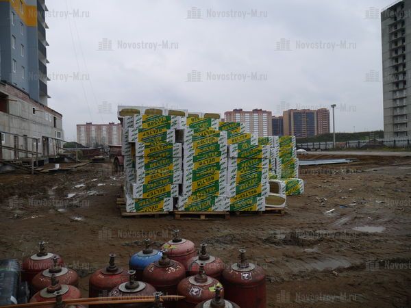 Технология строительства домов - панельная. Для строительства используются трехслойные панели производства «Киришский ДСК». Каждая панель высотой в этаж и состоит из внутреннего слоя бетона 160 мм, внутреннего слоя тепловой изоляции 170 мм и наружного слоя бетона 70 мм.