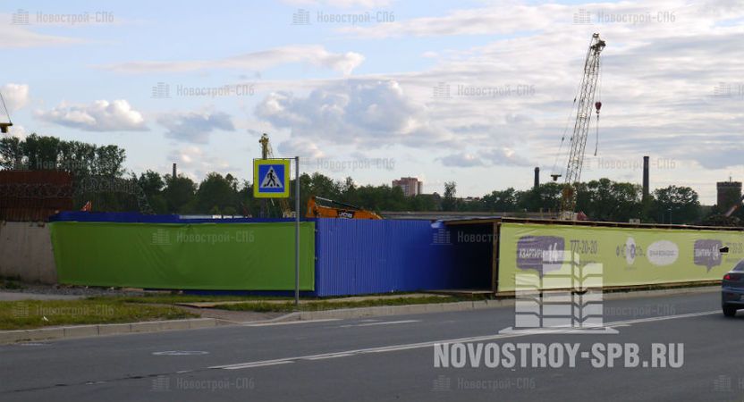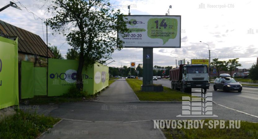 Располагается новостройка на Октябрьской набережной, 44 - южнее пересечения улицы Крыленко с Октябрьской набережной. Но если пользоваться общественным транспортом, то придется добираться от Дальневосточного проспекта, по которому от метро ходят автобусы, маршрутки и трамваи. Я добиралась от станции метро «Новочеркасская» на 38 трамвае, но еще ближе располагается метро «Улица Дыбенко», от нее ходят маршрутки и автобус №5.