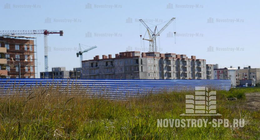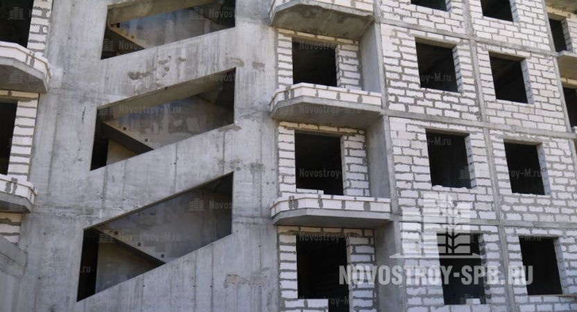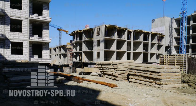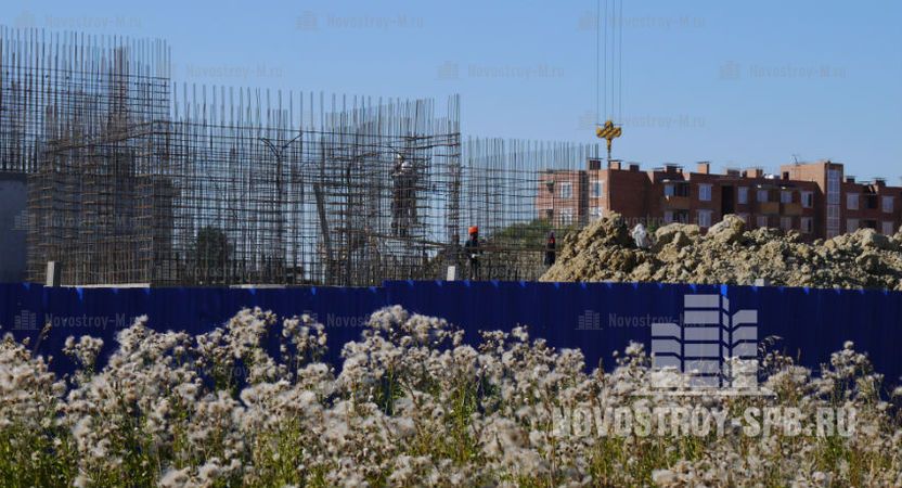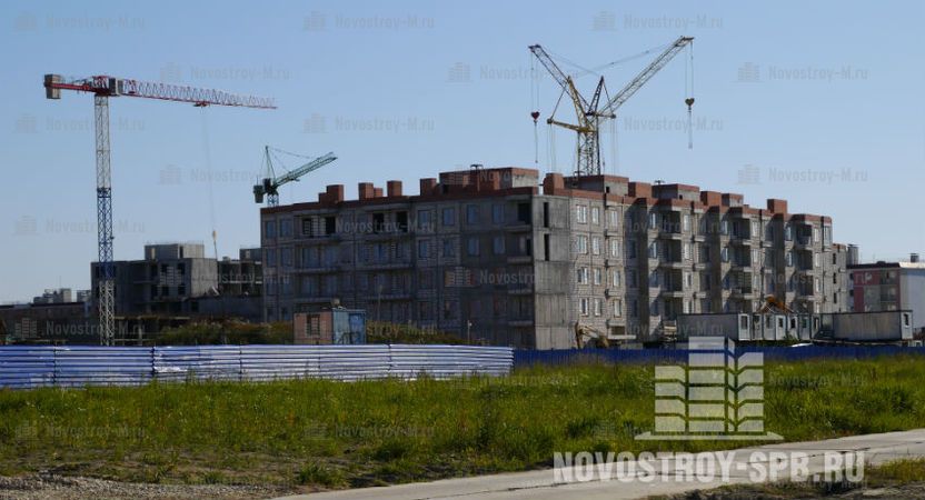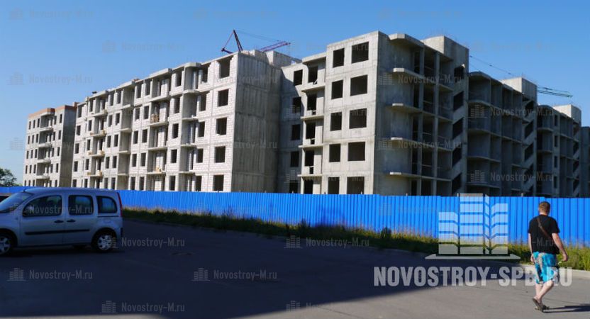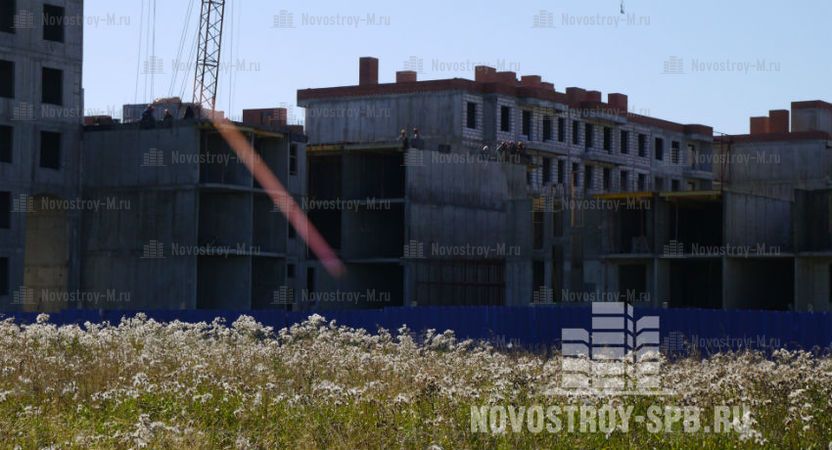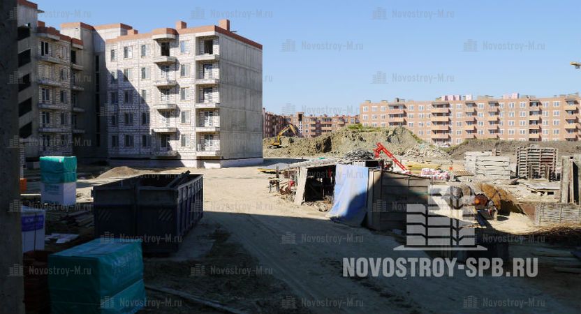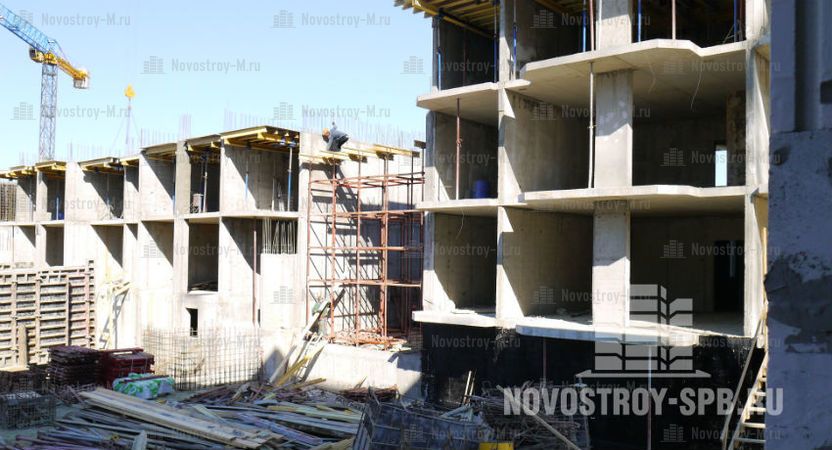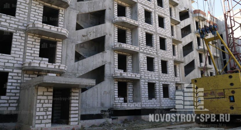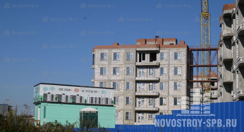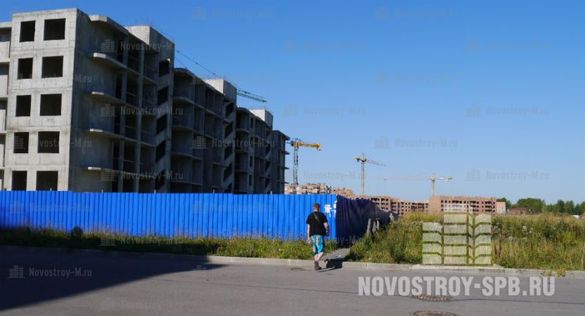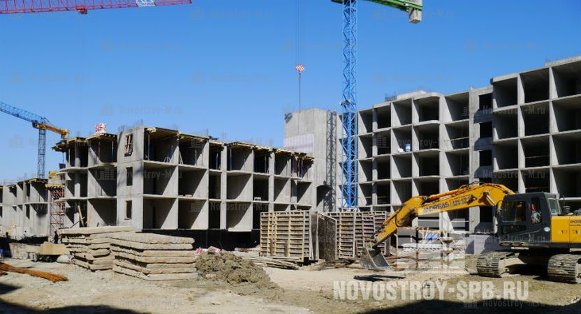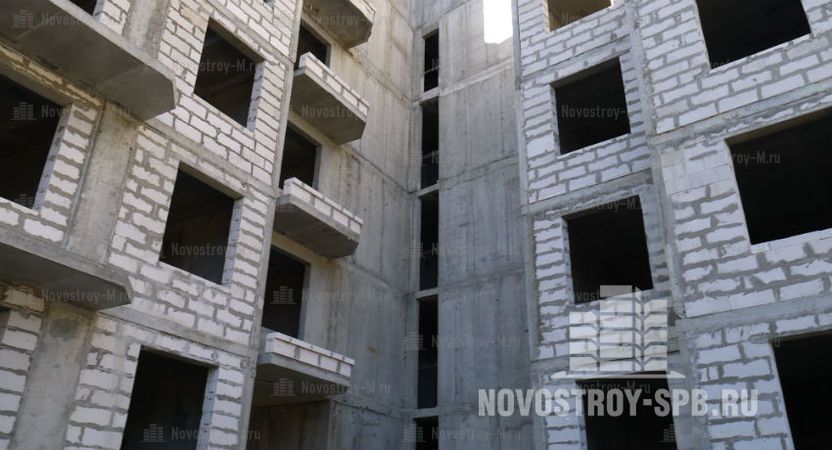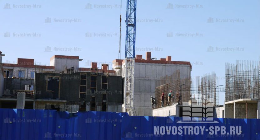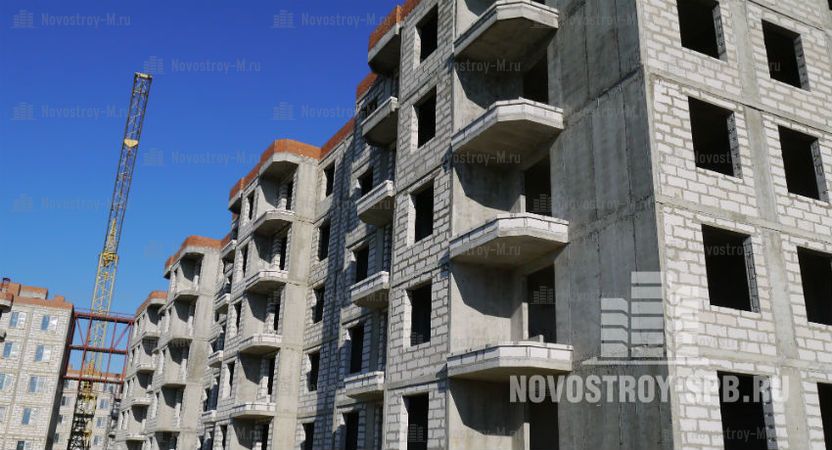 К Новому году собираются все 9 корпусов подвести под крышу, после чего все вместе подключить к коммуникациям (их будут тянуть от соседнего ЖК «Новый Петергоф») и делать внутреннюю отделку.