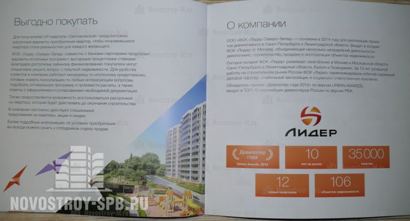 За конкретикой я отправилась в офис продаж ФСК «Лидер», он располагается на Петроградской стороне и работает с 9.00 до 21.00 без выходных. Помещение офиса большое и комфортное, буклеты красивые, а менеджеры очень любезны.