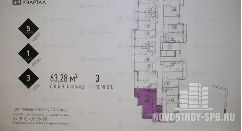 | 63.28 | 4 147 054 | 65 535 | юго-западная сторона, 2 балкона |