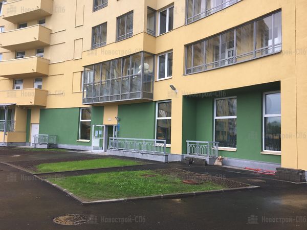 На первых этажах домов расположены коммерческие помещения в виде галереи с колоннами и навесом. Менеджер сказал, что пока точно не знает, какое у них будет наполнение, но эти помещения сдаются и под торговые точки, и под сервисные, и под офисы. Собственной инфраструктуры у ЖК не будет, однако они расположены в обжитом Красногвардейском районе и уже существующие социальные объекты это компенсируют.
