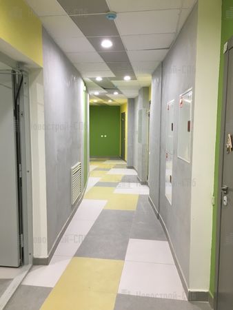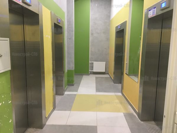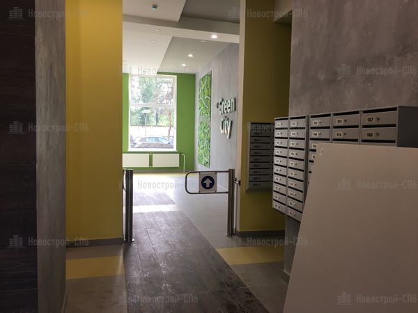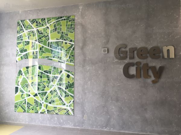 В оформлении МОПов, лифтовых холлов преимущественно использованы желтый, зеленый и серый цвета. Мне удалось посетить и один из главных входов (они располагаются во 2-й и 5-й секциях первого корпуса) и обычную парадную. Парадные входы просторнее, в них организована зона ресепшен, на стенах есть зеркала, визуально расширяющие пространство, на одной из стен крупными объемными буквами нанесено название жилого комплекса – Green City. А вот цветовое решение, выбранное для оформления лифтовых холлов, этажных коридоров мне не понравилось. Понятно, что весь комплекс выдержан в единой стилистике, но МОПы показались мне неоправданно яркими, аляповатыми. Да и слишком заметны на стенах участки, где уже скололась краска (у лифтов). Всё это создает впечатление какой-то неопрятности.