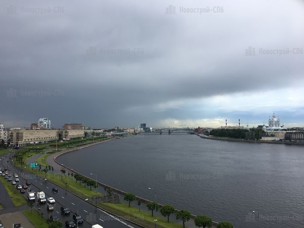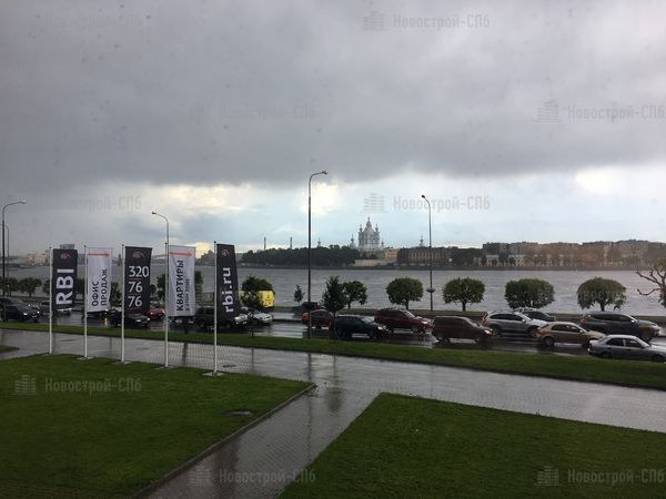 После осмотра шоу-рума я посетила еще одну квартиру в этом доме, отличительной чертой которой является огромная терраса площадью 189,3 кв. м. На момент моего визита эта 4-комнатная квартира еще не была продана, в ней велись внутренние строительные работы, поэтому главным образом удалось осмотреть только террасу. Конечно, вид с неё открывается очень красивый – набережная, Нева, Смольный собор, возможность наблюдать развод мостов, не выходя из собственной квартиры.