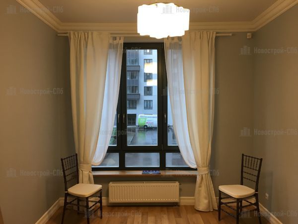 Большинство квартир в жилом комплексе сдаются без отделки. В них будет выполнена только стяжка пола со слоем шумоизоляции; коллекторная разводка труб отопления (трубы спрятаны в пол); межкомнатные стены без выравнивания, с затиркой швов. Застройщик установит двухкамерные алюминиевые стеклопакеты (1.6 х 1.8 м) с клапанами микропроветривания air-box; стальные радиаторы с нижней подводкой и встроенным терморегулятором; счетчики электроэнергии, ГВС и ХВС; систему противодымной защиты и пожарную сигнализацию; выключатели и розетки, в том числе розетки на лоджиях (в ванной комнате – защищенная розетка).