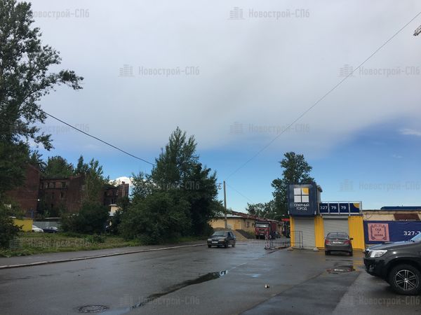 Раньше на месте застройки располагался завод метизов. В память о нем «Северный город» сохранил несколько чугунных плит, которые когда-то являлись частью полов завода. Плиты отреставрируют и используют в оформлении автомобильных парковок. Отмечу, что в этой части Невского района до сих пор есть действующие производства – Невский завод, Пролетарский завод, Императорский фарфоровый завод, «ЛенЭнерго», пивоваренный завод «Вена». Такое соседство не с лучшей стороны характеризует окружающую экологическую обстановку.