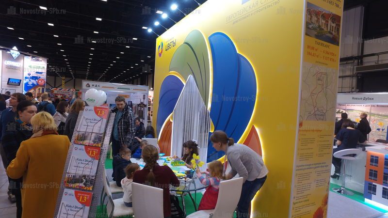 Прогуливаясь по линиям зала, я обнаружила еще один экран с возможностью сделать фото и распечатать его, либо отправить посетителю на электронный адрес. Он располагался на стенде компании «Арсенал-Недвижимость», но с противоположной стороны от менеджера, поэтому сразу я его и не заметила. Порадовали детские уголки на стенде ЖК «Цветы» и на площадке компании «Петербургская Недвижимость». К слову, людей с детьми было немало, но детских капризов и криков я не услышала. На многих стендах были представлены красивые макеты жилых комплексов, привлекающие внимание и детей, и взрослых.