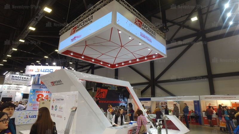 Вначале меня привлек стенд компании «Арсенал Недвижимость». Он выделялся среди массы довольно тесно стоявших стендов своей необычной ромбовидной формой с зеркальным покрытием с одной стороны и неоновым экраном – с другой. Я решила поинтересоваться квартирами в жилом комплексе «Энфилд» и подошла полистать каталог с планировками. Девушка, сидевшая за стойкой, была очень приятной и позитивной, правда, немного пассивной – скорее отвечала на вопросы, чем активно вовлекала в беседу и стремилась заинтересовать. Тем не менее, сориентироваться в приемлемых планировках, сторонах, на которые выходят окна, и ценах на квартиры она мне помогла, а напоследок оставила свою визитку для дальнейшего общения в офисе.