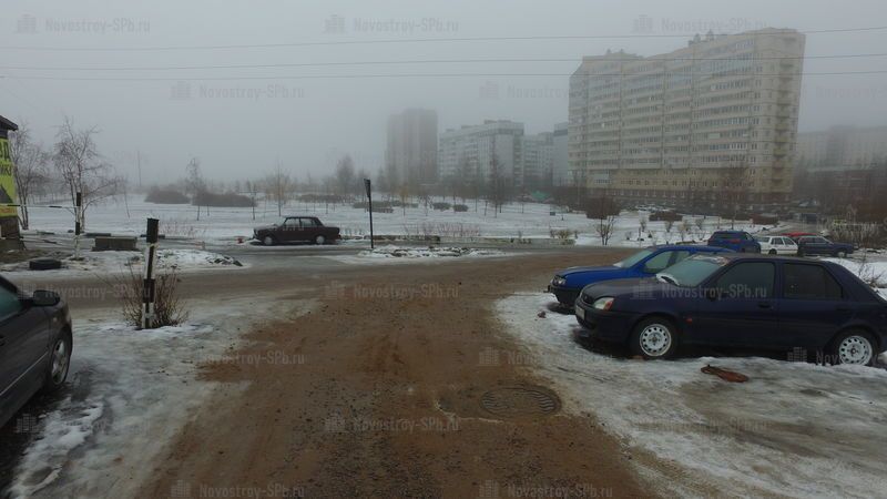 Жилой комплекс рекламируют как расположенный ближе всех остальных к метро «Комендантский проспект». Оно, может, и так, но расстояние до метро составляет около двух с половиной километров. Пешком этот путь можно преодолеть только за полчаса, а по проспекту Королева до метро ходит единственная 179 маршрутка с интервалом в 15 минут, так что весь путь все равно займет около получаса (кстати, идти от стройки к остановке на проспекте Королева сейчас очень далеко и неудобно). Либо можно пройти еще квартал до Комендантского проспекта, по которому следует уже гораздо больше транспорта.