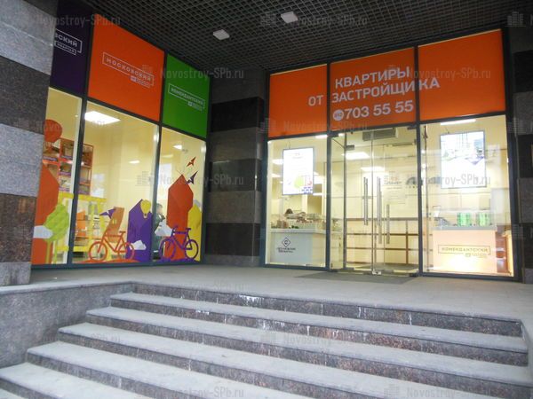 Единственный офис ФСК «Лидер» располагается на Петроградской стороне недалеко от метро «Чкаловская» и работает без выходных по очень удобному расписанию – с 9 до 21 часов. Обстановка в офисе вполне располагающая: средних размеров комната со стойкой ресепшена, макетами всех жилых комплексов, столиками для консультирования клиентов, скромным детским уголком с раскрасками и доской для рисования. На стойке у входа в свободном доступе стояли буклеты по всем жилым комплексам.